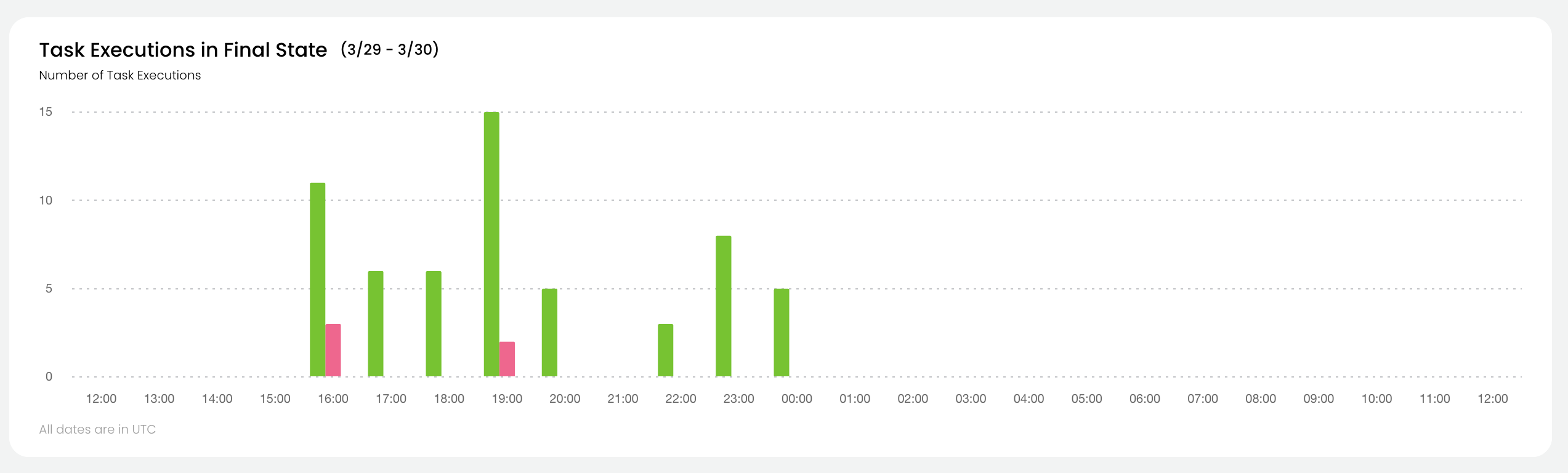 For all tasks in the selected project and domain which reached their final state during the selected time period, the chart shows: