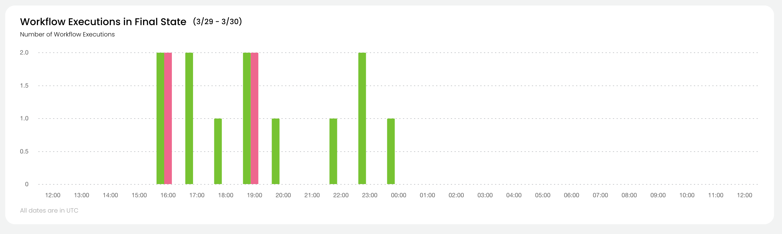 For all workflows in the selected project and domain which reached their final state during the selected time period, the chart shows: